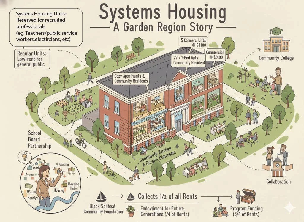 Systems Housing partners with the Community First, & uses stable rents to support essential workers, local services, and long-term community needs, guided by the Garden Region’s collective desire & dreams.